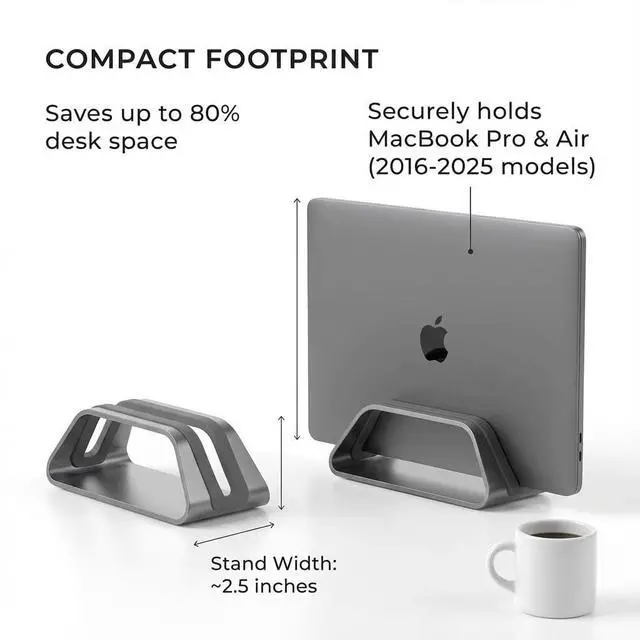 Compatible with all MacBook Pro laptops 2016 - 2024 and MacBook Air laptops 2018 - 2025. It is not meant to support MacBooks with cases.