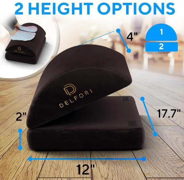 Perfect Height for Your Needs - Delfori office foot rest under desk foot stool with non-slip base consists of two pieces with convenient magic tape between the upper and lower layers, allowing you to easily adjust the cushion's height to meet your specific needs. To modify the thickness, simply unzip the layers and rearrange the tape as desired.