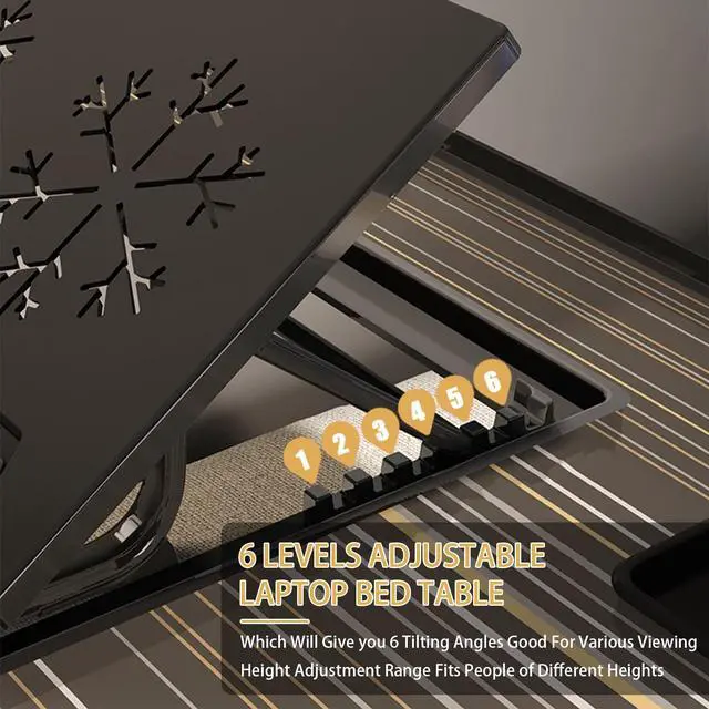 6 Levels Adjustable Laptop Bed Table: The Laptop Bed Tray Table has 6 adjustable slots, which will give you 6 tilting angles good for various viwing, Height adjustment range fits people of different heights.