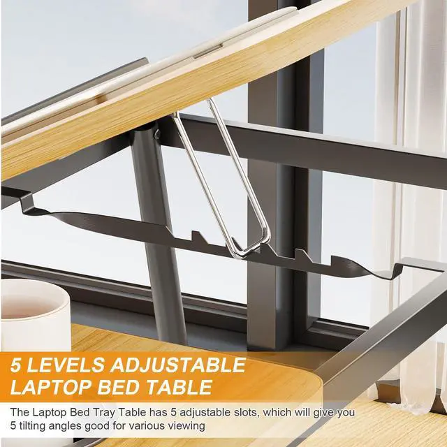 5 Adjustable Angles: The Laptop Bed Tray Table has 5 adjustable slots, which will give you 5 tilting angles good for various viewing, Height adjustment range fits people of different heights.
