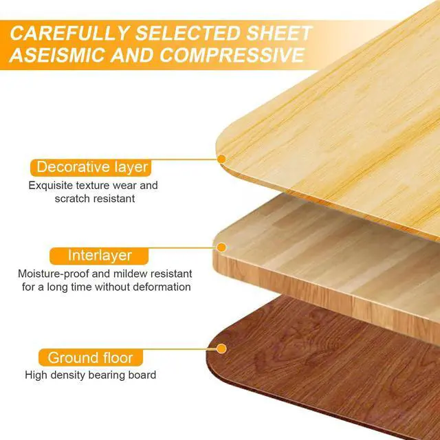 Q: What material is the tabletop made of? Is it particle board? A: The table surface is made from easy-to-clean density board, providing a durable and sturdy work surface.