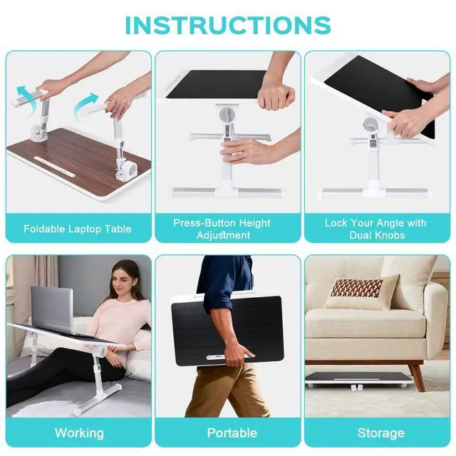 Laptop Desk for Bed, Adjustable Laptop Table, Foldable and Portable Bed Tray Table for Sofa Office Floor, Large Size