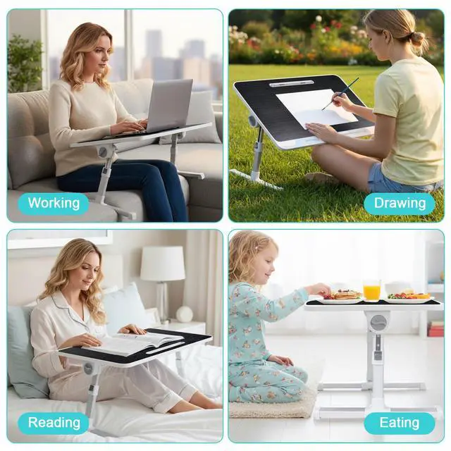 Perfect as a bed desk for laptop use, a breakfast tray in bed, a writing desk for kids, or a standing desk accessory. Its versatility makes it great for the living room couch, office floor, or even outdoor use, seamlessly adapting to your lifestyle.