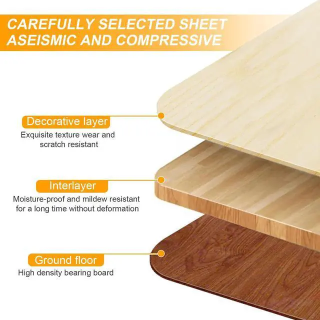 Q: What material is the tabletop made of? Is it particle board? A: The table surface is made from easy-to-clean density board, providing a durable and sturdy work surface.