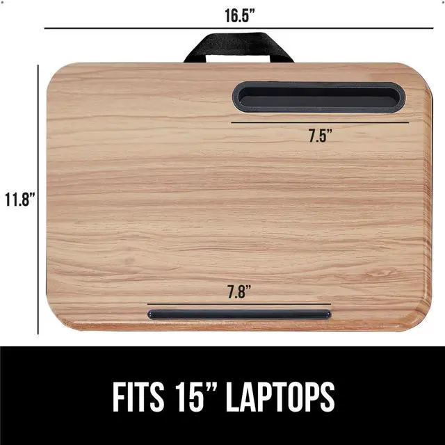 LAPTOPS UP TO 15 INCHES: desk measures 16.5 inches x 11.8 inches and fits 15 inch laptops; lightweight and portable desk features a convenient carry top handle and is easy to take anywhere