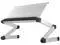 "WorkEZ Executive is an adjustable laptop stand that works everywhere you do - on the couch, in bed, sitting at a desk and even standing. The lightweight, durable stand is made of premium-grade, anodized aluminum and naturally dissipates heat to cool laptops. Each leg has special joints that accordion the stand up and down, adjusting the height and angle to perfectly position screens for optimal comfort. Not just for laptops, WorkEZ Executive also holds tablets, books, and monitors in a more ergonomically-correct position. When you're done using it, the entire stand collapses down into a thin, flat package.