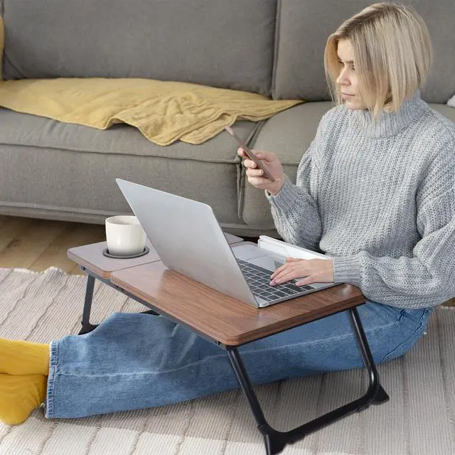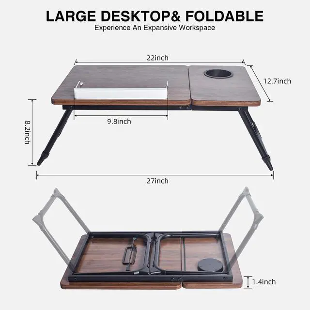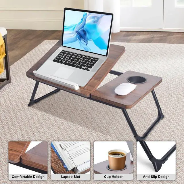 Adjustable Lap Desk for Bed - Portable Laptop Tray Table with Foldable Legs, Phone Slot & Cup Holder - Lightweight & Sturdy Breakfast, Work, Study Table for Sofa, Couch, Floor