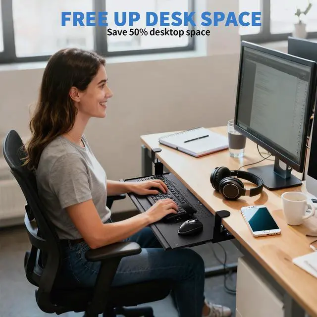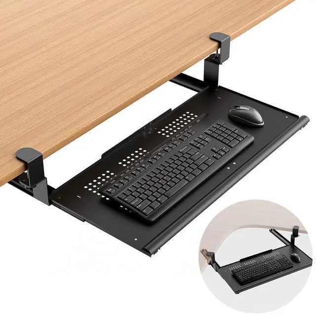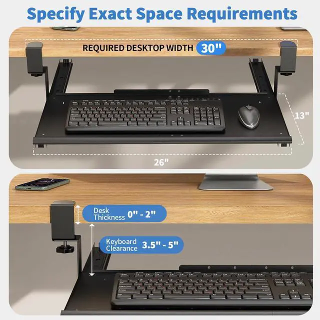 Spacious 26x13 Inch Tray for Full-Size GearGenerous surface fits standard/mechanical keyboards (up to 26" long) + mouse, with extra room for wrist rests or small accessories. Ventilated design prevents overheating.