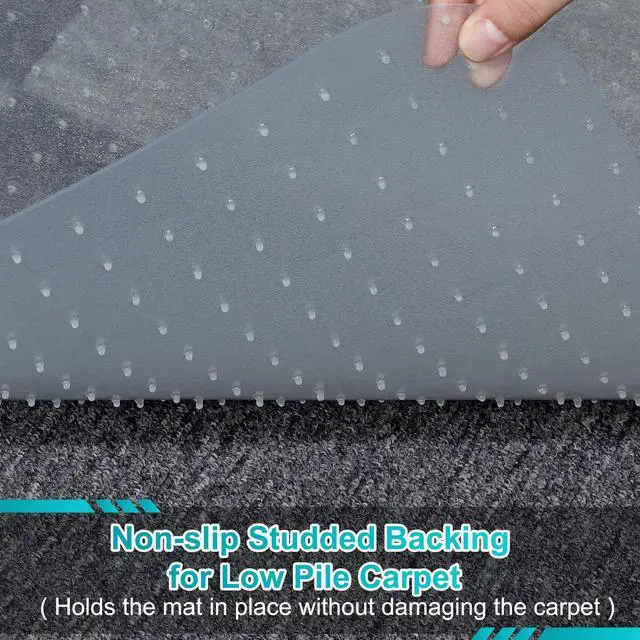 EFFECTIVE GRIP: Studded underside holds the mat firmly in place on carpet floors. This desk chair mat with 3mm spikes is designed for Low and Flat Pile carpets.