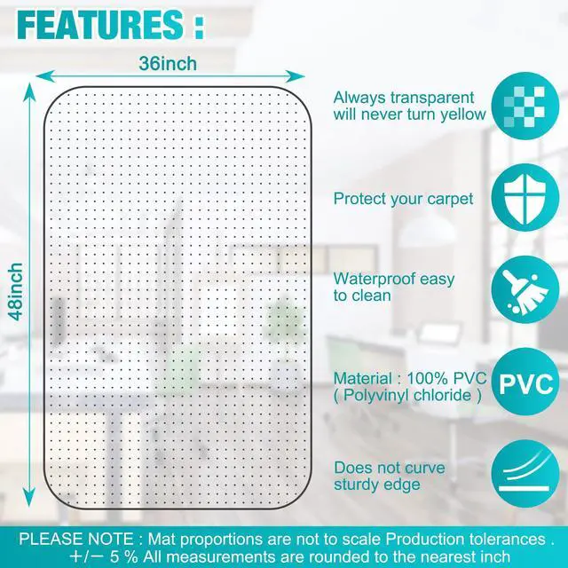 TRANSPARENT DESIGN: LeapYouth office desk chair mat with highly transparent finish, great in show beautiful carpeted floors and the clear design allows the beauty of your floor to shine through.