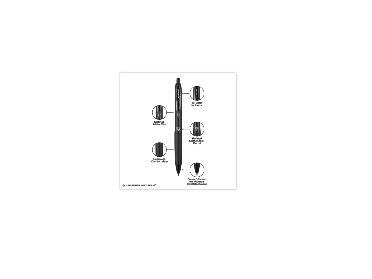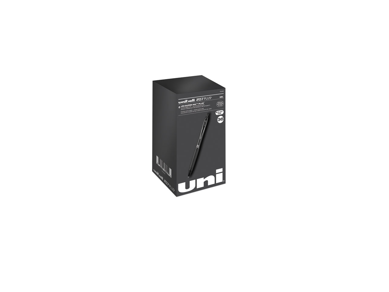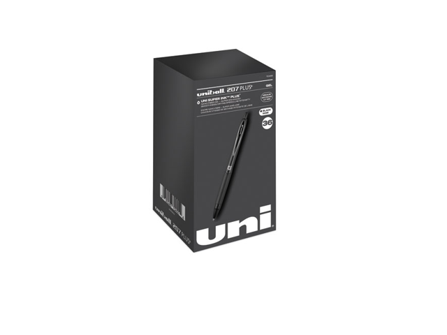 uni-ball 70158 207 Plus+ Gel Pen, Retractable, Medium 0.7 mm, Black Ink, Black Barrel, 36/Pack