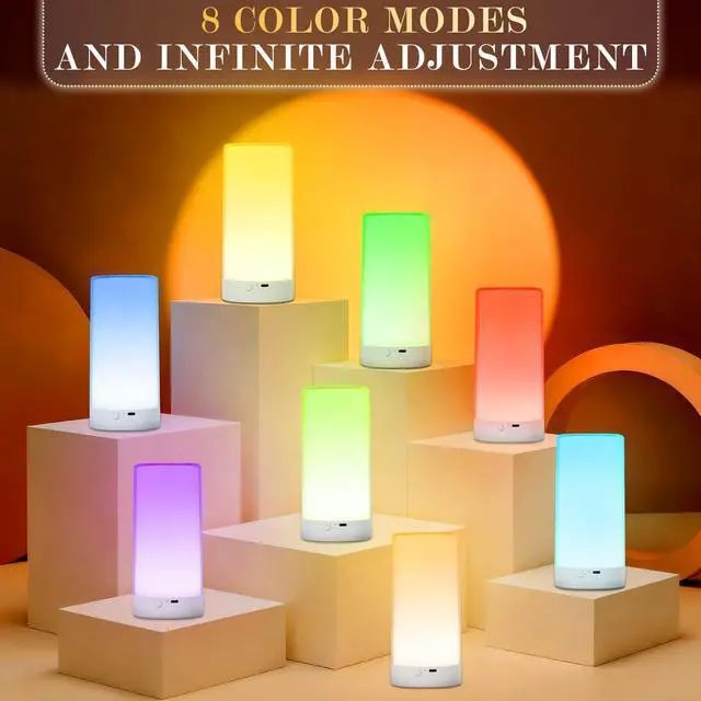 Table Lamp, Touch Sensor Bedside Lamps, Dimmable Warm White Light & Color Changing RGB for Kids Room, Bedroom, Living Room, Camping