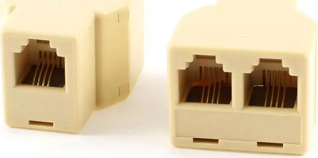 Unique Bargains RJ11 6 Pins F to F 3 Port Telephone Splitter Connector Adapter 2 Pcs