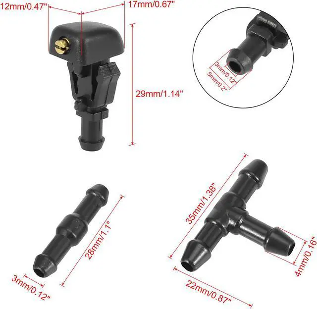Package Included2 x Windshield Washer Nozzles, 1 x 2 Meters Windshield Washer Hose, 4 x Windshield Wiper Hose Connectors.