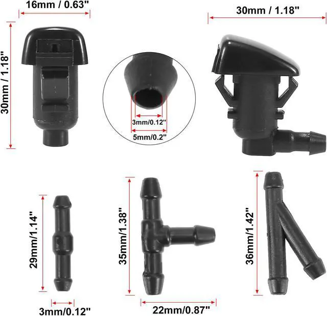 Package Includes: 2 x Windshield Wiper Washer Nozzles, 1 x 2 Meters Windshield Washer Hose, 3 x Connectors, 2 x Washer