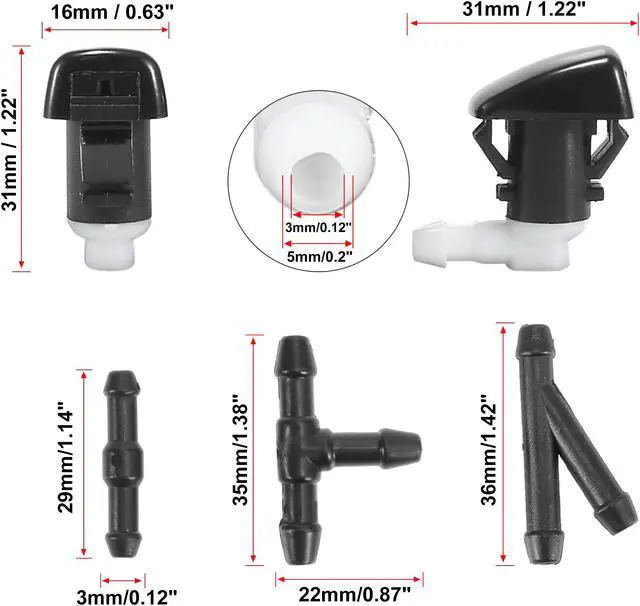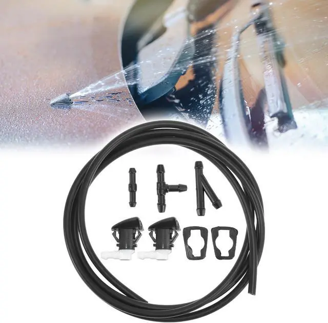 Package Includes:2 x Windshield Wiper Washer Nozzles, 2 x Washers, 1 x 2 Meters Windshield Washer Hose, 3 x Connectors