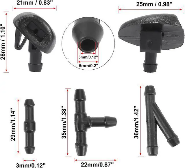 Package Includes:2 x Windshield Wiper Washer Nozzles, 1 x 2 Meters Windshield Washer Hose, 3 x Connectors