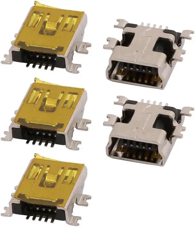 Description: 1. The package contents 5 pcs B type mini USB connector. 2. Compared with the standard USB, mini USB is smaller, and it is suitable for mobile devices and other small electronic devices.