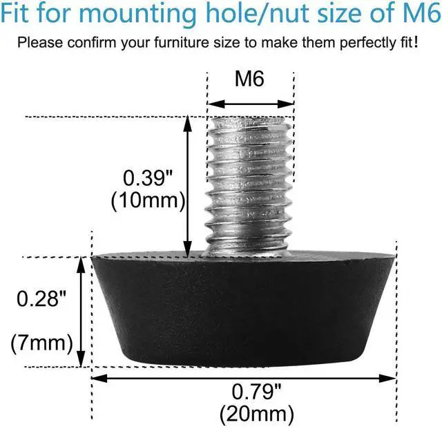 M6 x 10 x 20mm Leveling Feet Adjustable Leveler Protector for Sofa Leg 20pcs