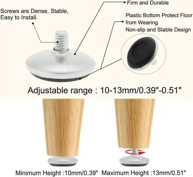 M6 x 10 x 30mm Leveling Feet Adjustable Leveler Cover for House Chair Leg 4pcs