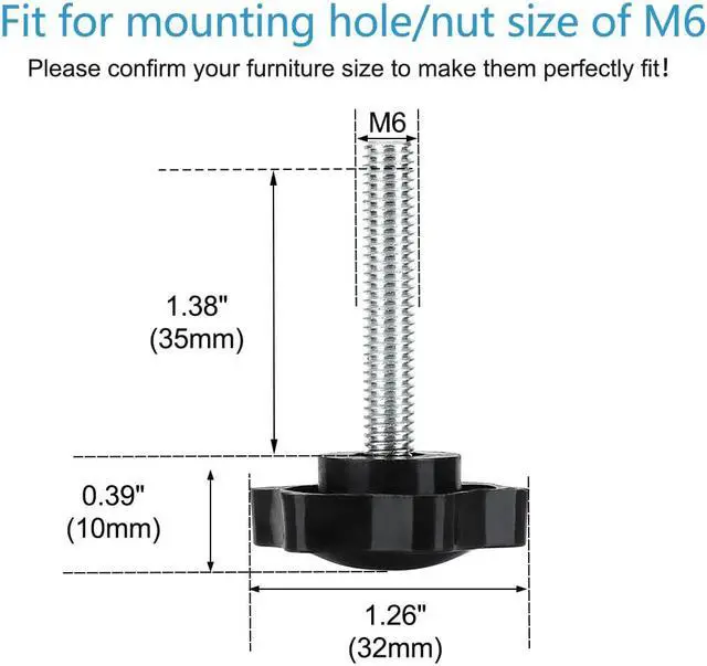 Available Size: M6 x 35 x 32mm/M10 x 1.38 Inch x 1.26 Inch(Thread Diameter*Thread Length*Base Diameter)