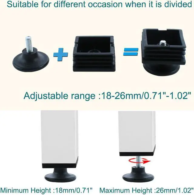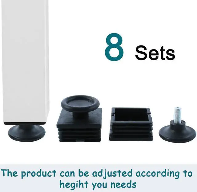 Adjustable Leveling Feet 50 x 50mm Square Tube Inserts Furniture Glide 8 Sets