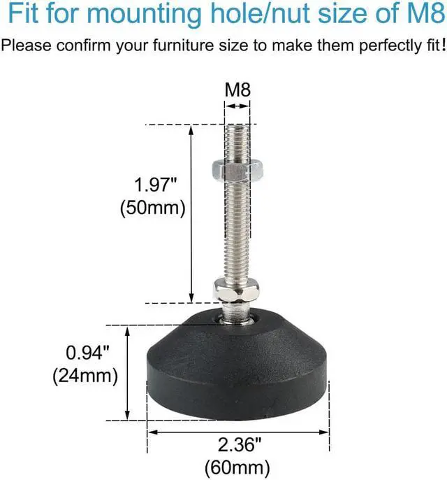 M8 x 50 x 60mm Leveling Feet Adjustable Leveler Protector for Machine Leg 4pcs