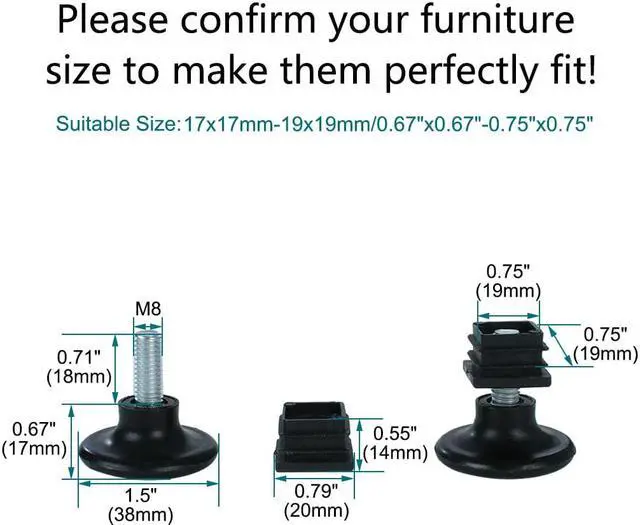 4. The adjustable leveling foot and tube insert set is for office or household furniture even industrial machine with threaded sockets.