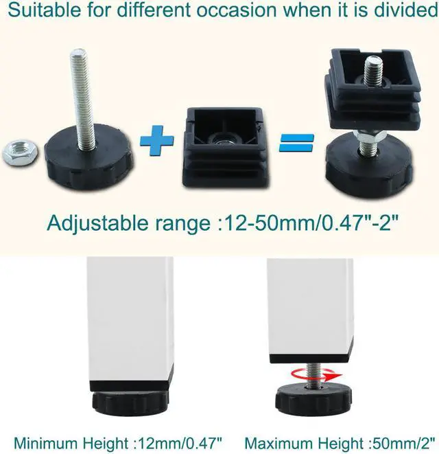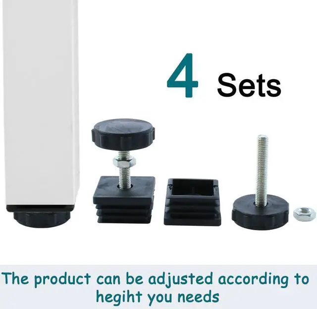 Adjustable Leveling Feet 38 x 38mm Tube Inserts Furniture Table Glide 4 Sets