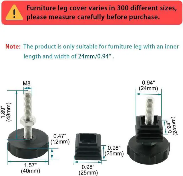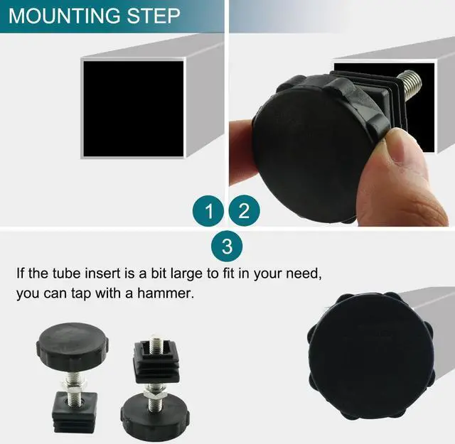 Leveling Feet 25 x 25mm Square Tube Inserts Table Leg Adjustable Leveler 4 Sets