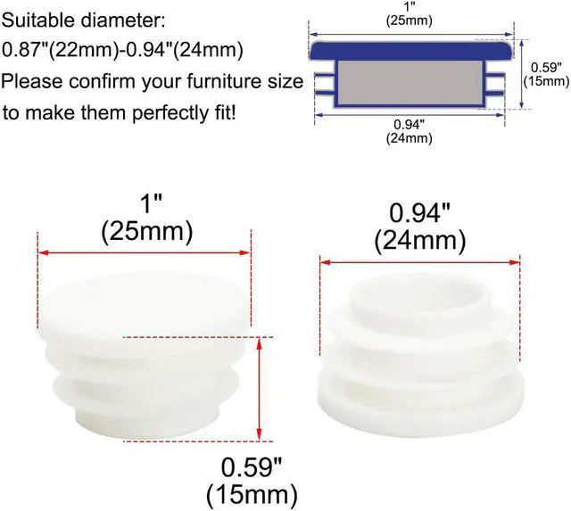 7. These strong protective tube inserts are good for tubular racks, covering sharp tubular ends, or anywhere a finished look is needed. Such as office and patio furniture, chair legs, table legs, walking sticks, ladders, shelves, metal stands, gym equipment, etc.