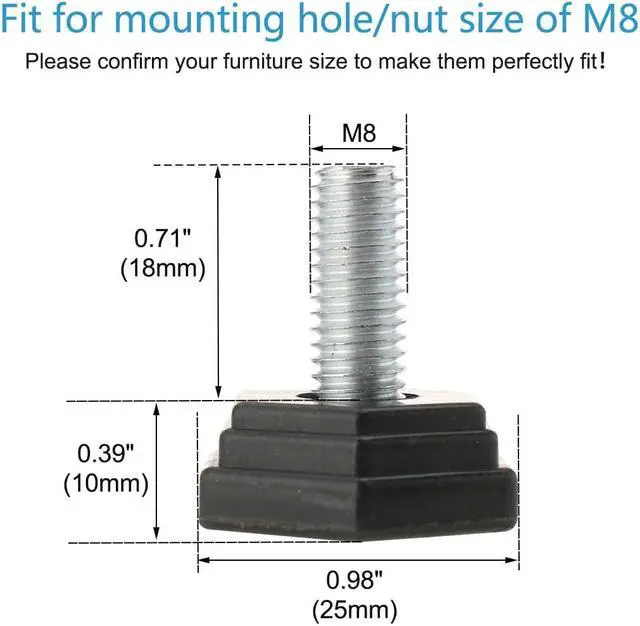 M8 x 18 x 25mm Hand Screw Leveling Feet Floor Protector for Home Chair Leg 20pcs