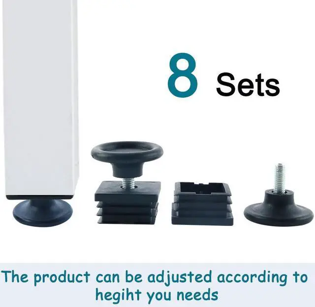Adjustable Leveling Feet 38 x 38mm Square Tube Inserts Furniture Glide 8 Sets