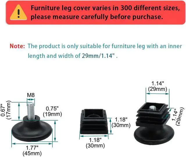 4. The adjustable leveling foot and tube insert set is for office or household furniture even industrial machine with threaded sockets.