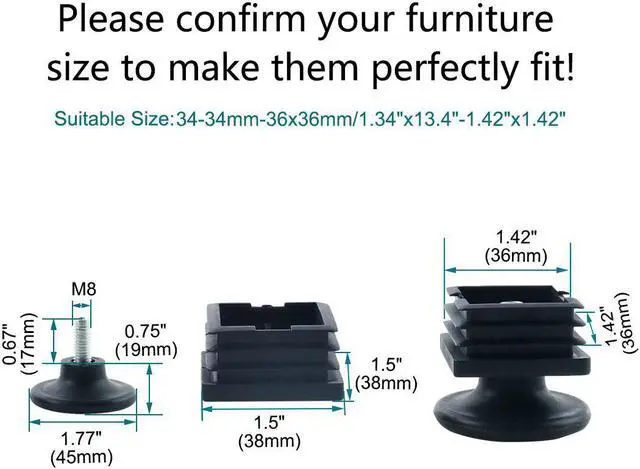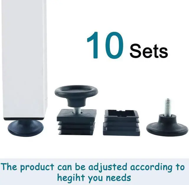 Adjustable Leveling Feet 38 x 38mm Square Tube Inserts Furniture Glide 10 Sets