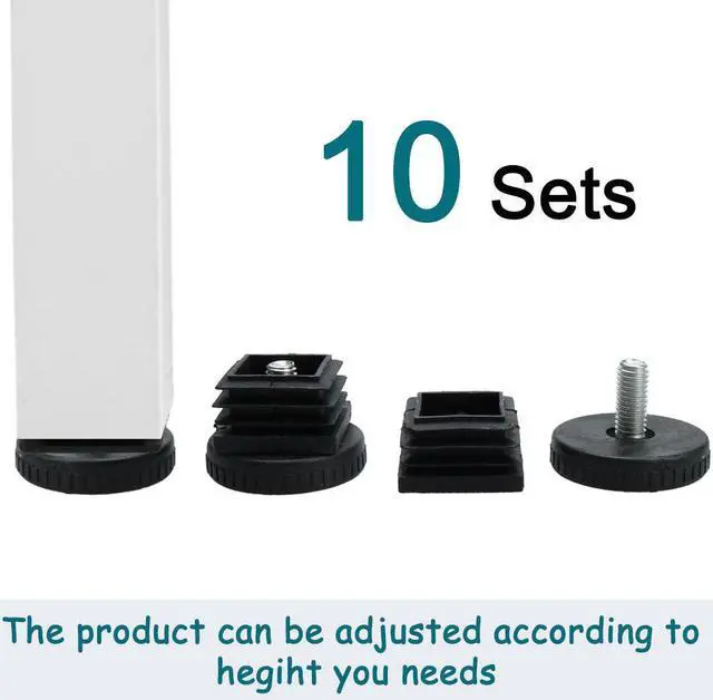 Leveling Feet 30 x 30mm Square Tube Inserts Furniture Adjuster with Nuts 10 Sets