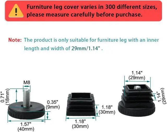 4. The adjustable leveling foot and tube insert set is for office or household furniture even industrial machine with threaded sockets.
