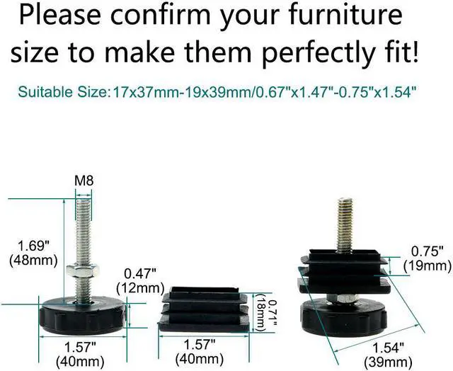 4. The adjustable leveling foot and tube insert set is for office or household furniture even industrial machine with threaded sockets.