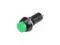 1NO 1NC (SPST) contact type, green round head, Latching action, 12mm panel cutout diameter.