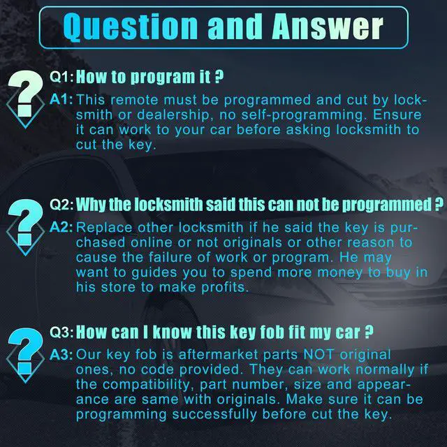 This remote and door key must be programmed and cut by a qualified locksmith, CAN NOT self-programming.