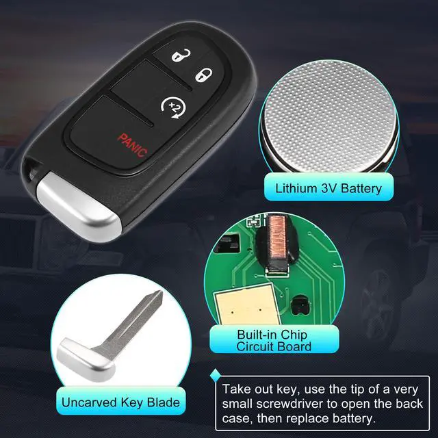 Pros of our keyless remote: With built in chip, sensitive response, 4 buttons car key: remote locking, unlocking, panic, etc. Fast response, wireless remote control.