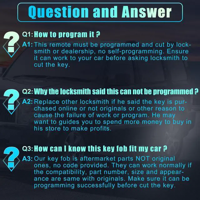 1.Please make sure the remote programming can work to your vehicle before asking the locksmith to cut the key. Don't wait for him to cut the key and discover that it does not work, which may make a loss.