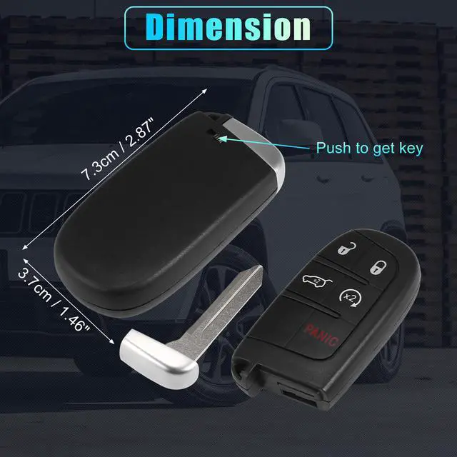 Package for car key fob:1 x Car Keyless Entry Remote (Battery included). Size: 7.3x3.7cm / 2.87"x1.46"(L*W). Please check OE number/FCC ID and product picture with original one before purchase.