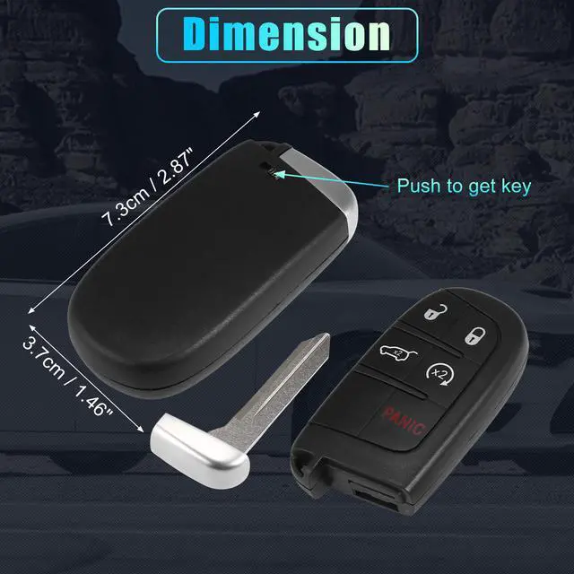 • Package for car key fob:1 x Car Keyless Entry Remote (Battery included). Size: 7.3x3.7cm / 2.87"x1.46"(L*W). Please check OE number/FCC ID and product picture with original one before purchase.
