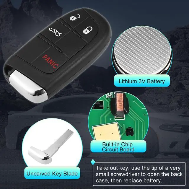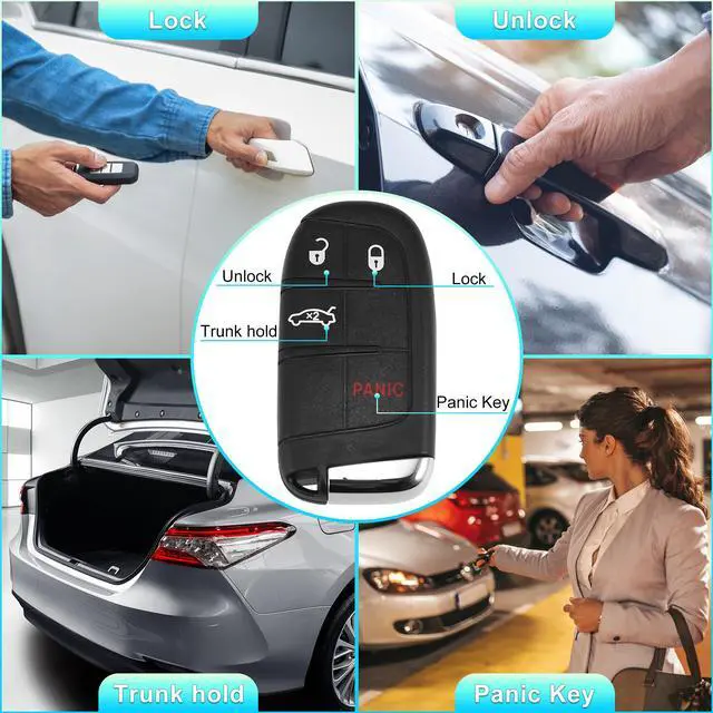 Pros of our keyless remote: With built in chip, sensitive response, 4 buttons car key: remote locking, unlocking, panic, trunk opening. Fast response, wireless remote control.