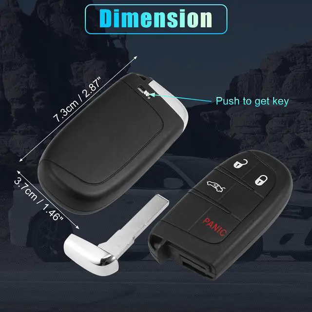 Package for car key fob:1 x Car Keyless Entry Remote (Battery included). Size: 7.3x3.7cm / 2.87"x1.46"(L*W). Please check OE number/FCC ID and product picture with original one before purchase.
