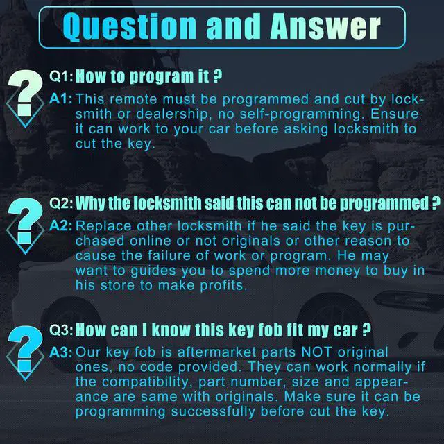 1.Please make sure the remote programming can work to your vehicle before asking the locksmith to cut the key. Don't wait for him to cut the key and discover that it does not work, which may make a loss.