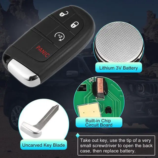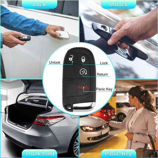 Pros of our keyless remote: With built in chip, sensitive response, 4 buttons car key: remote locking, unlocking, panic, etc. Fast response, wireless remote control.