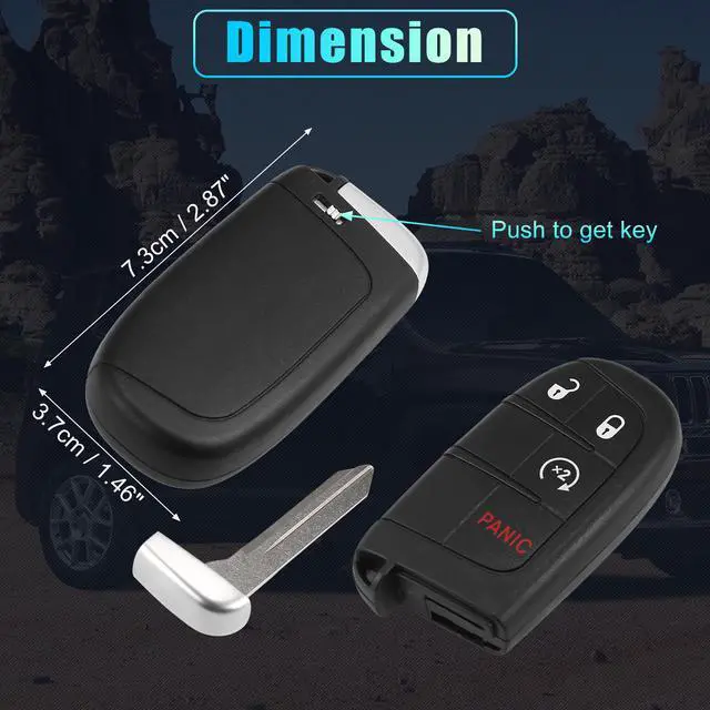 Package for car key fob:1 x Car Keyless Entry Remote (Battery included). Size: 7.3x3.7cm / 2.87"x1.46"(L*W). Please check OE number/FCC ID and product picture with original one before purchase.