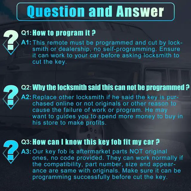1.Please make sure the remote programming can work to your vehicle before asking the locksmith to cut the key. Don't wait for him to cut the key and discover that it does not work, which may make a loss.
